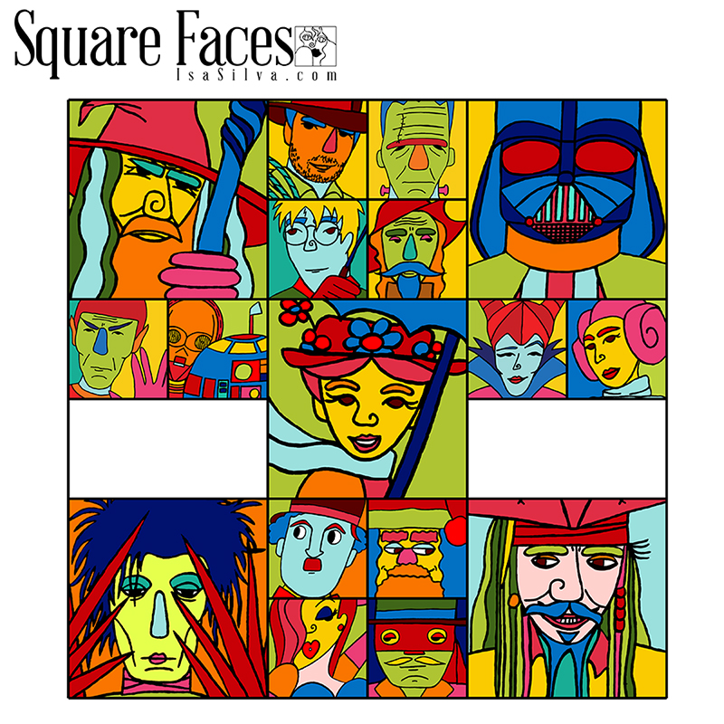 Esta série das Square Faces é dedicada a rostos conhecidos reais e ficcionais. - Square Faces: Histórias Infantis